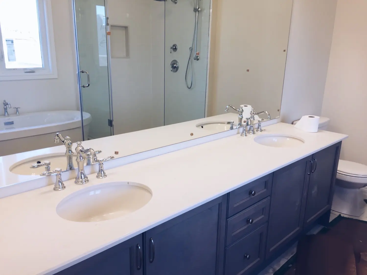 Dated bathroom vanities, chipped finishes, and outdated colors don't just make your bathrooms look tired—they undermine the polished, spa-like atmosphere you deserve in these essential personal spaces. At Pro Painters LTD, we recognize that bathroom cabinet painting requires specialized techniques to withstand constant moisture exposure, temperature fluctuations, and daily cleaning that standard finishes cannot endure. Since 1998, our expert team has transformed countless bathroom vanities and storage cabinets throughout Metro Detroit's most elegant homes, ensuring your cabinetry receives moisture-resistant coatings and durable finishes that maintain their beauty despite the demanding bathroom environment.